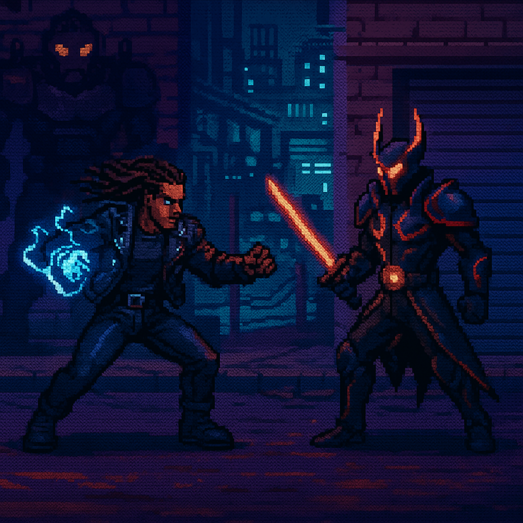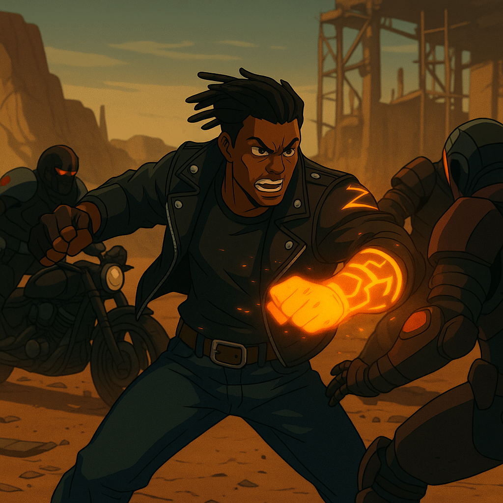 RAGE REBELS is an Afro-futurist beat ‘em up pulsing with radical energy — a fusion of 3D animation, tribal-tech martial arts, biker-core combat, and a raw, original rap-metal soundtrack.